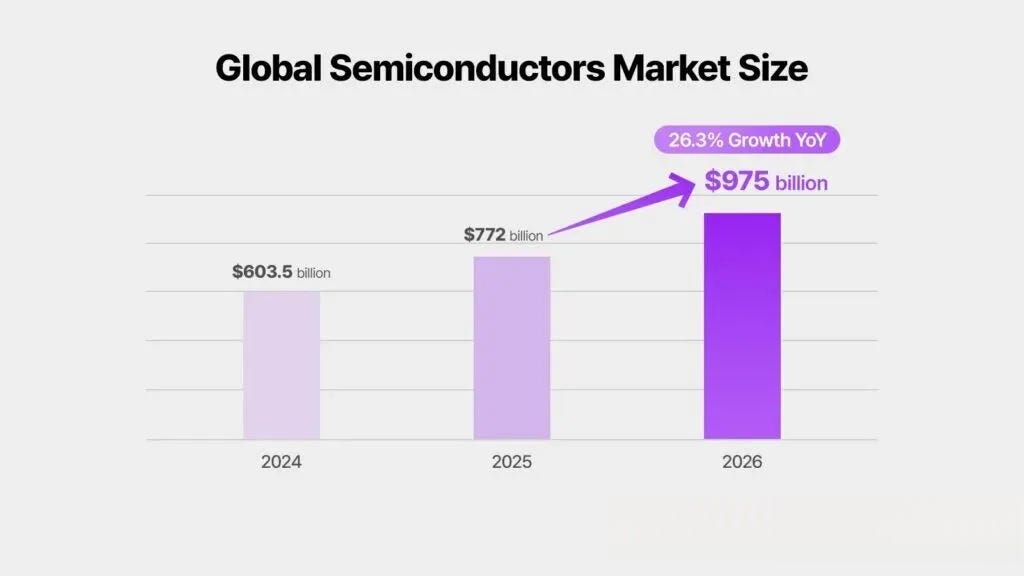 According to data from the World Semiconductor Trade Statistics (WSTS), the global semiconductor market in 2026 will grow by more than 25% year-over-year, reaching approximately $975 billion, with the memory segment achieving a 30% growth rate. Market research firms and investment banks predict particularly strong growth in the server and data center memory market, with some institutions estimating that the 2026 memory market size will exceed $440 billion.